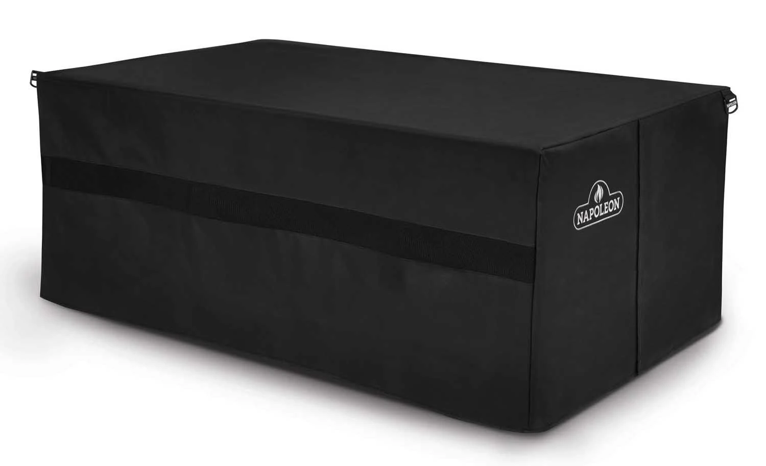 Napoleon 61851 Rectangular Patio Flame Cover for GPFTR3656-BZ, KENS1-BZ and VICT1-BZ Fire Tables, 56×36-Inch provides a high quality outdoor-rated cover to protect your Napoleon Patioflame fire pit table. The heavy duty water resistant fabric offers reliable protection from weathering and other outdoor elements while the air vents to reduce moisture build up when your table is not in use. The sleek black color is sure to blend into any patio decor while the two metal hanging loops allow easy storage when you’re not using the cover – protect your Napoleon Patioflame fire pit table to guarantee years of enjoyment, with this Patio Flame Cover.