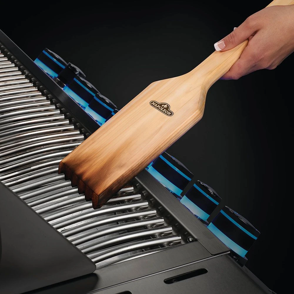Napoleon 62051 Cedar Grid Scraper provides a high-quality cleaning option for your grill. This two-sided tool will get your grids spotless with its sleek design. It also features a built-in storage hook to keep it close at hand and easy to access.
