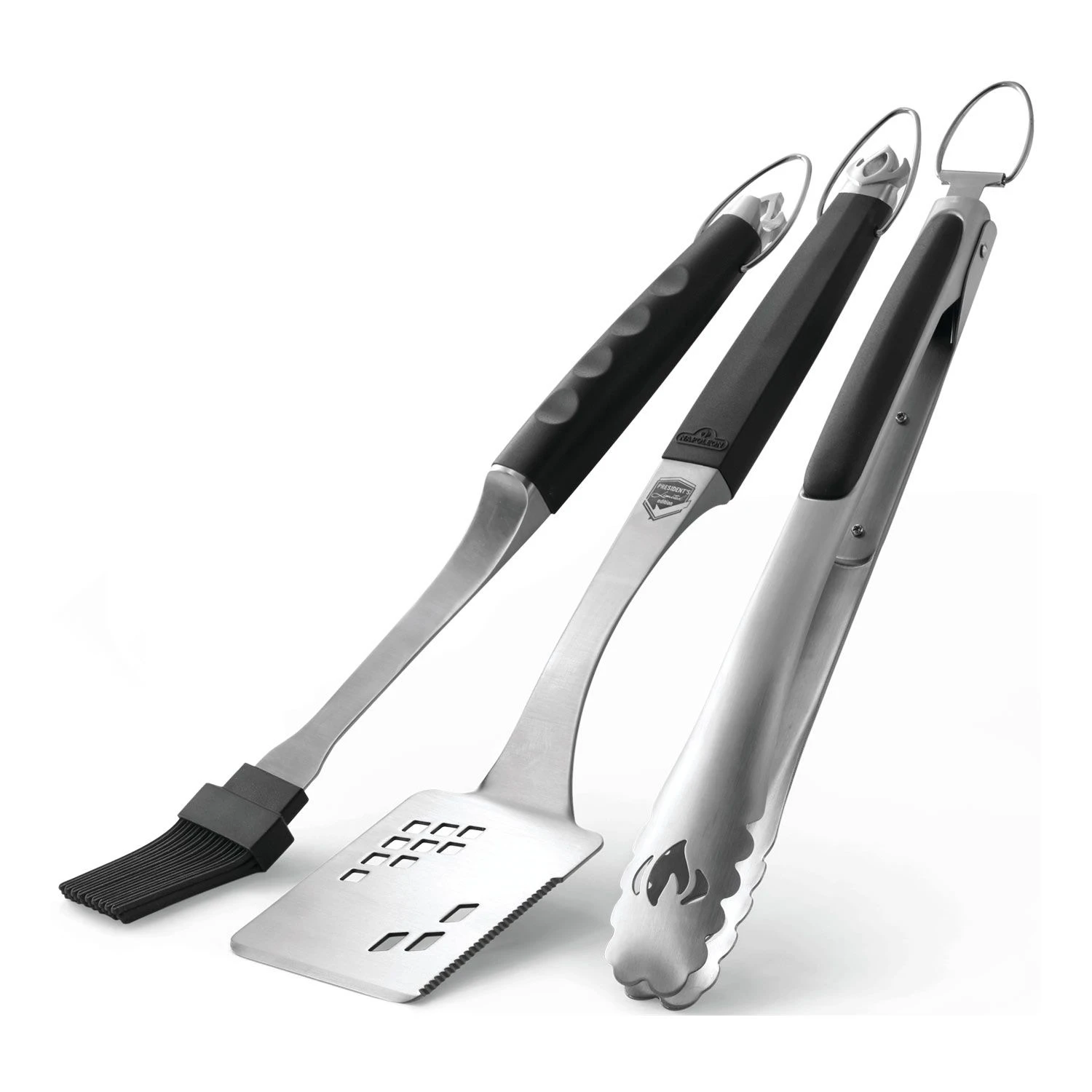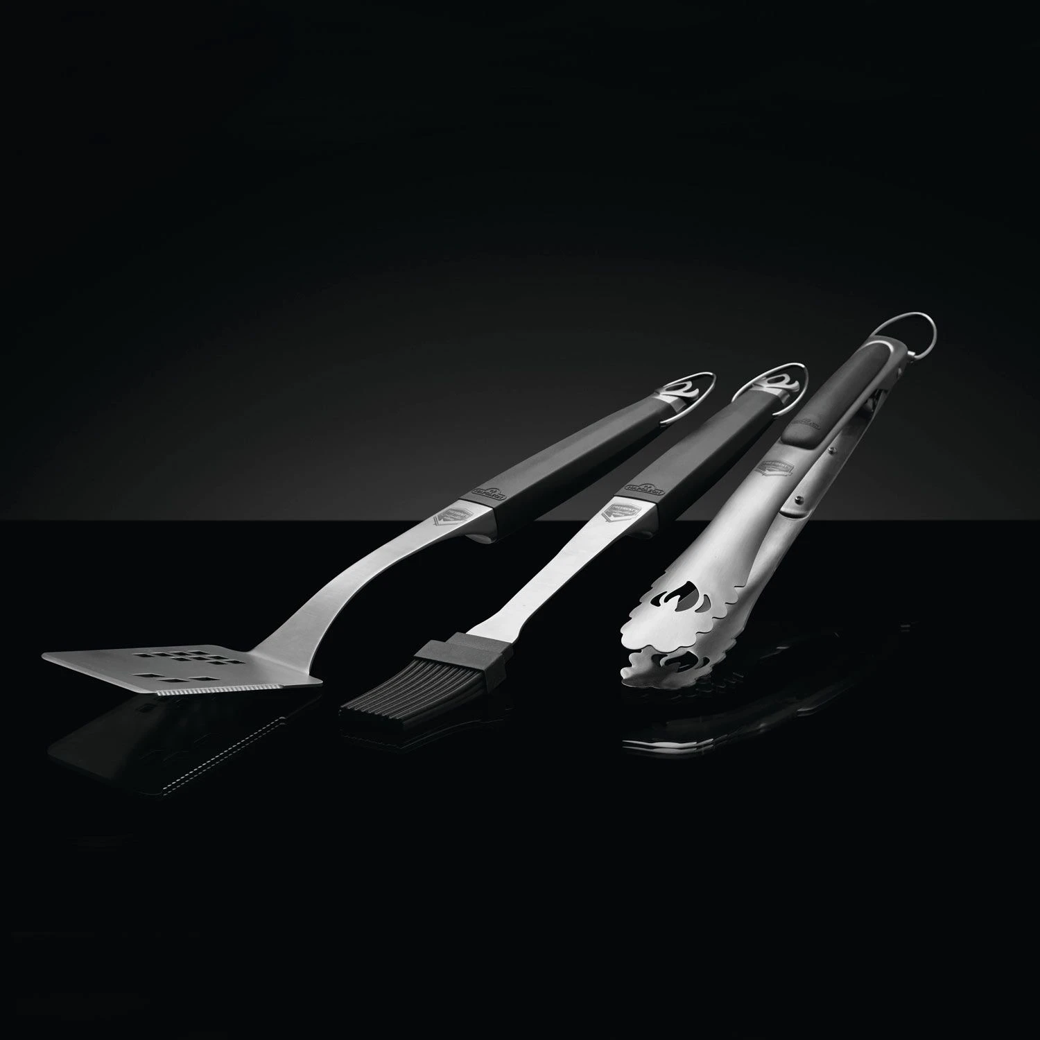 Napoleon 70036 Executive 3 Piece Toolset provides premium accessories for use with your grill. This convenient three-piece set includes a basting brush, spatula, and tongs to cover many kitchen tasks. Cast stainless steel construction ensures these products last for many years. Upgrade your grilling experience with help from Napoleon.