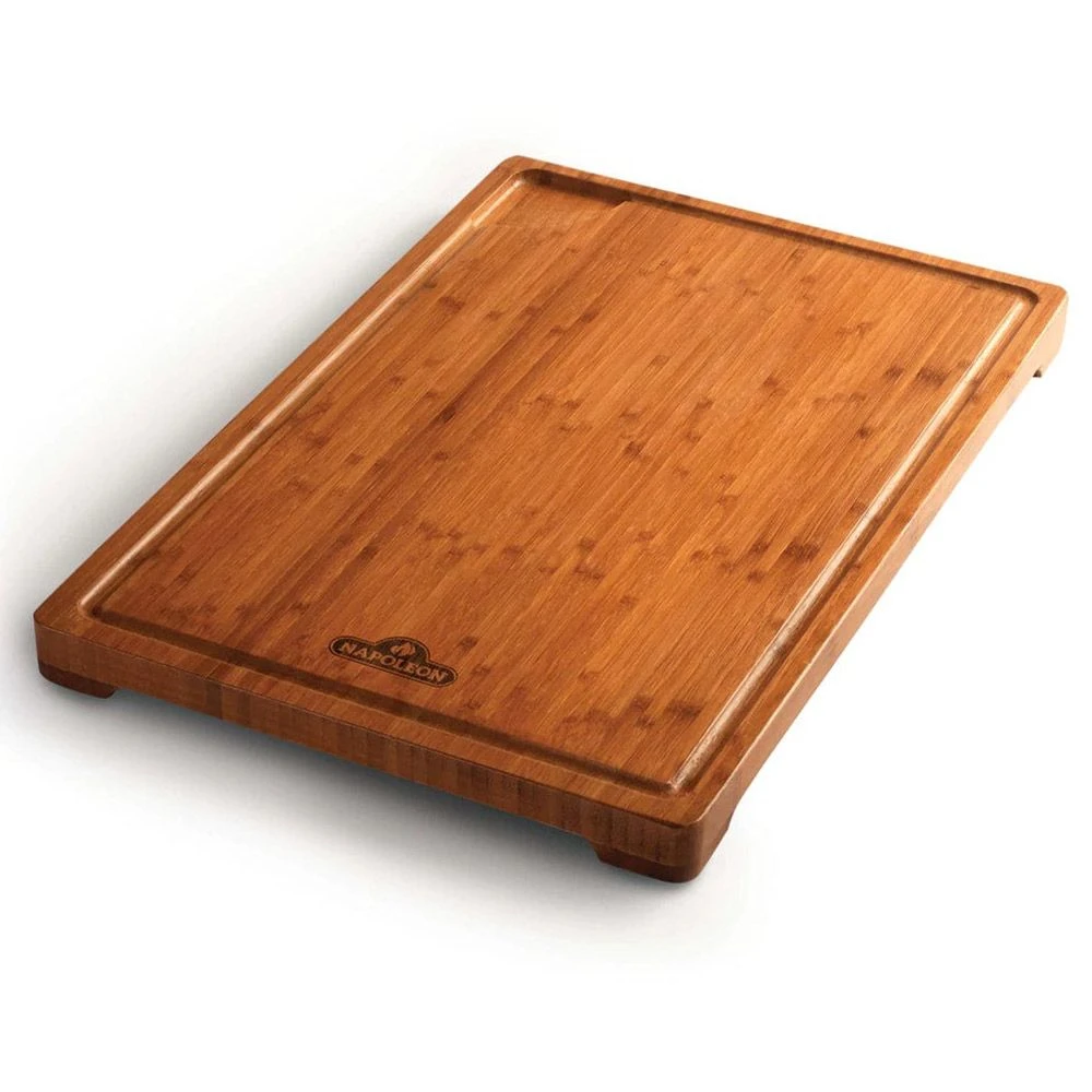Napoleon 70114 Bamboo Carving Cutting Board provides a premium accessory for use with your kitchen. Featuring bamboo construction, this cutting board offers the highest quality for your food prep. The cutting board features integrated channels to catch drippings, while the sturdy silicone feet provide a solid base. An ergonomic handle allows for easy carrying.