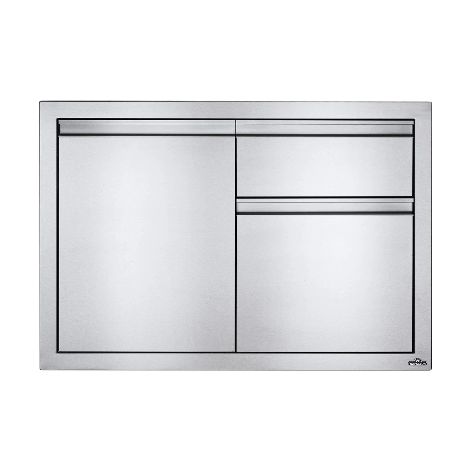 Napoleon BI-3624-1D1W Single Door & Trash Combo, 36×24-Inches provides an impressive storage option for use with your Napoleon grill island. Featuring heavy-duty stainless steel construction, this component has been built to last. Notable characteristics of this unit include soft closing hardware, seamless design, and anodized aluminum handles for a premium piece sure to upgrade your outdoor kitchen. This combination unit measures in at 36 inches by 24 inches.