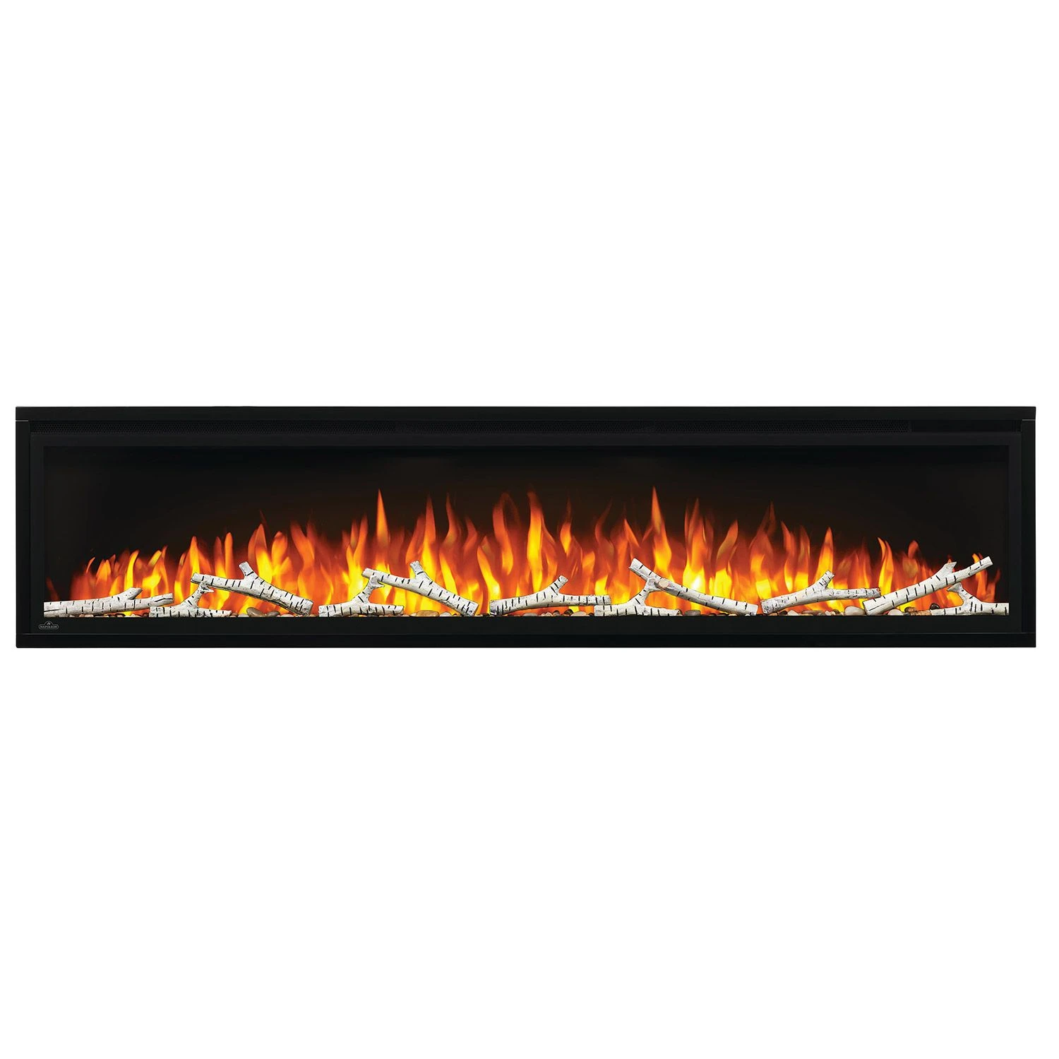 Napoleon Entice Series Electric Fireplace with Crystal Ember Media provides a beautiful electric fireplace option to enhance your favorite indoor living space. With a clean face design and large viewing area, the Napoleon Entice makes a great addition to any room. Additionally, this unit can be wall mounted, semi-recessed, or fully recessed with both plug-in and hardwiring options to give greater installation versatility. The Entice series includes contemporary crystal media, while two different log sets can be added as optional media. Blue, orange, and multi-colored flame options further enhance appearance, while fade-in and fade-out modes for the ember bed add ambiance. An integrated 5,000 BTU heater can zone heat approximately 400 square feet to create a cozy atmosphere in any room, while overheat protection and a child safety lock function allow for selective disabling of the heat. A touch control panel with a premium display window offers easy control, while an included fully featured remote control offers added convenience. Switch from a traditional gas or wood fireplace and enjoy the cost savings and convenience provided by an electrically powered fireplace–perfect for remodeling or new construction.