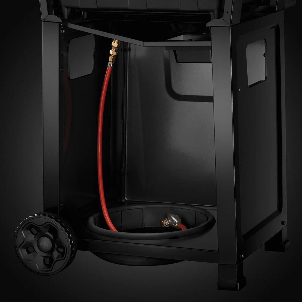 - Enclosed cart design secures the propane tank and protects it from the elements