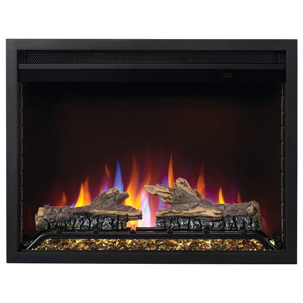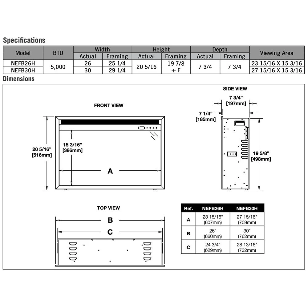 Napoleon NEFB26H Cineview 26-Inch Built-In Electric Fireplace with Logs, Crystal Media and Remote provides a beautiful all-in-one electric fireplace to enhance your favorite living space. With its convenient size, durable design and versatile installation options, this fireplace offers an impressive upgrade to any room. Blue, orange, and multi-colored flame options allow for customizable firebox appearances, while seven different ember bed lighting options allow users to easily update the look of their hearth space. A self-trimming flange allows for a professional built-in appearance, while the optional surround kit allows for additional customization.