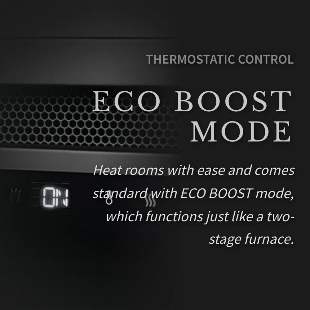 - Convenient remote control operates flame height, heater, and can operate thermostatically