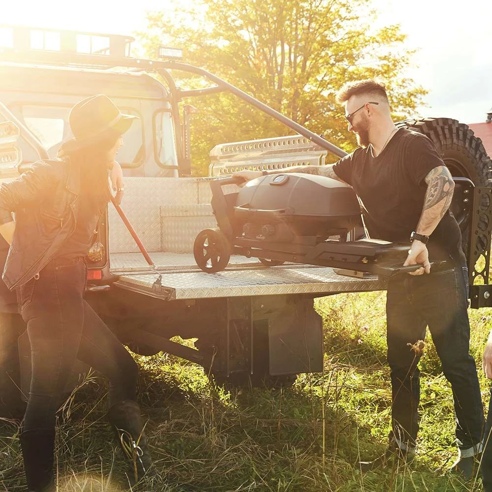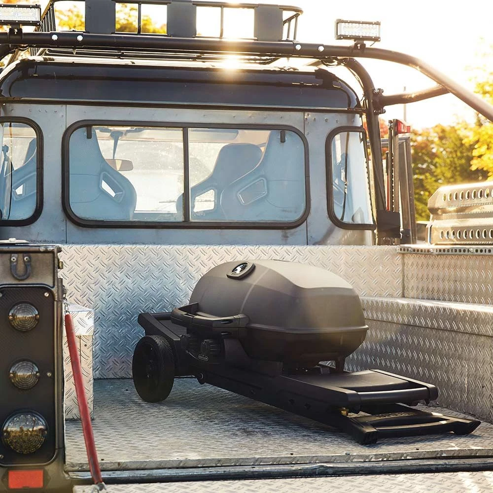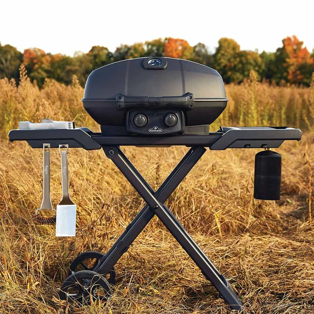 Napoleon PRO285X-MK-PHM Phantom TravelQ Portable Grill with Scissor Cart, Propane provides a high performance grill for the on-the-go enthusiast, this time in a modern matte black design. Big for a portable grill, it features 285 square inches of grilling surface and a 12,000 BTU capability. The durable porcelain cast iron cooking grid ensures a quality sear capable of surviving transportation. The TravelQ is the perfect option for camping, boating, RVing or any other activity with limited space as it sets up in 10 seconds and uses 1 pound propane canisters, but includes conversion kit for 20 pound propane tanks – be sure to bring your TravelQ wherever the adventures take you.