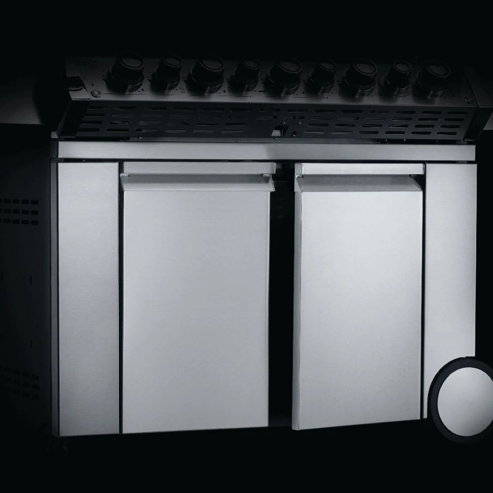 Napoleon PRO665RSIBSS-3 Prestige PRO 665 Gas Grill On Cart with Rotisserie and Side Burner, 36-Inches delivers high end performance without the price tag of a high end grill. The solid 304 stainless steel construction is designed for long term durability and ensures the grill will hold up to the elements. The (5) main grilling burners are rated for a 12,000 BTU maximum and feature a solid 304 stainless steel tube construction while the stainless steel sear plates help protect the burners and provide even heat distribution, preventing hot and cold spots across the 665in² grill surface.