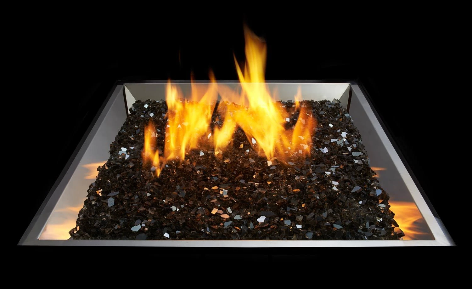 - Includes – 24×24-inch burner, control panel with spark ignition, propane regulator and natural gas conversion, topaz fire glass