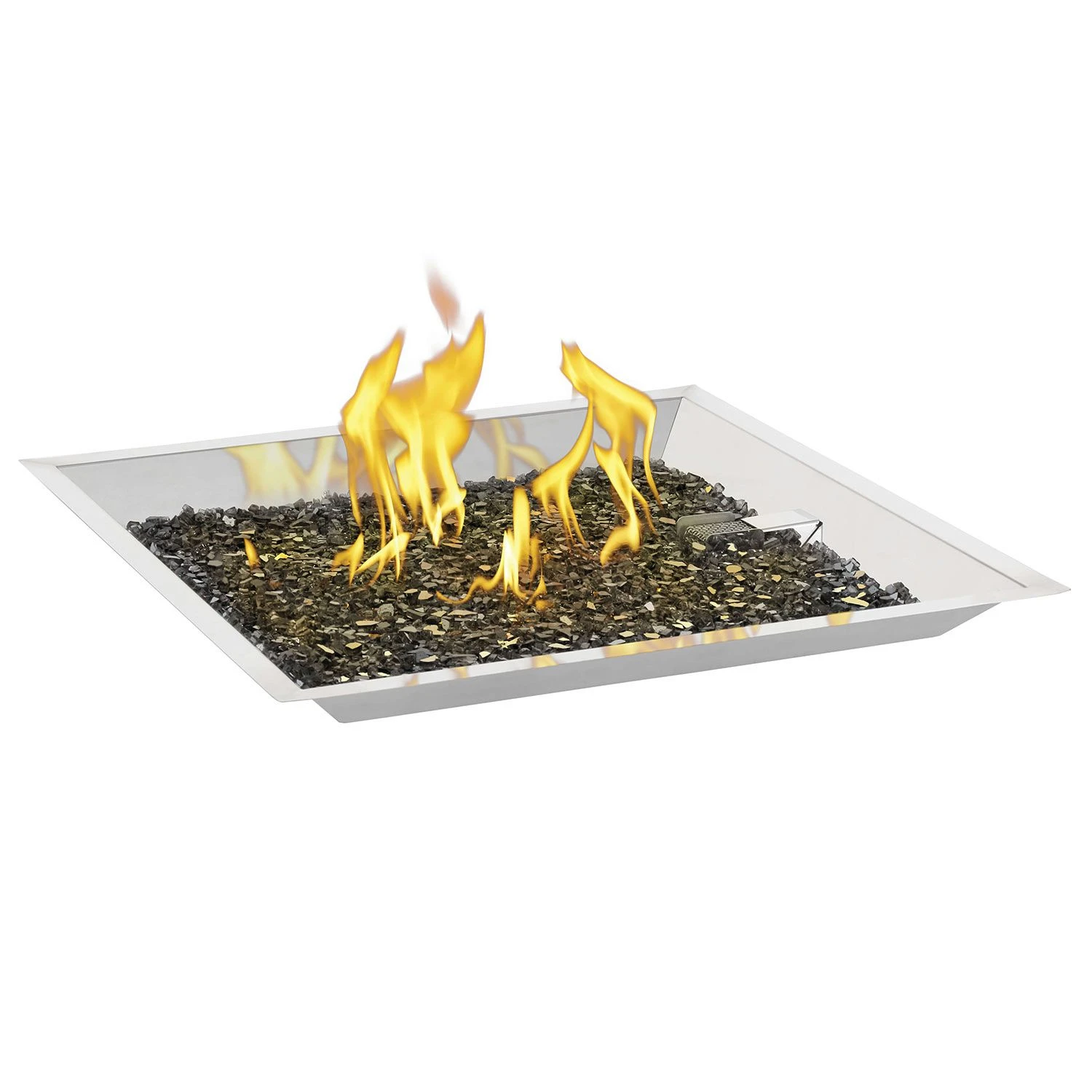 Napoleon Push Button Flame Sensing Gas Fire Pit Kit, Square, 24×24-Inch provides a high quality spark ignition fire pit kit to complete your DIY gas fire pit. The commercial quality 304 stainless steel construction offers long term durability and weather resistance, while the manual valve features a complete pilot assembly with a thermocouple to monitor the flame presence. The 60,000 BTU burner offers a wealth of heat, while the square 24×24-inch burner design will provide a contemporary fire feature complete with topaz fire glass to offer a modern appearance.