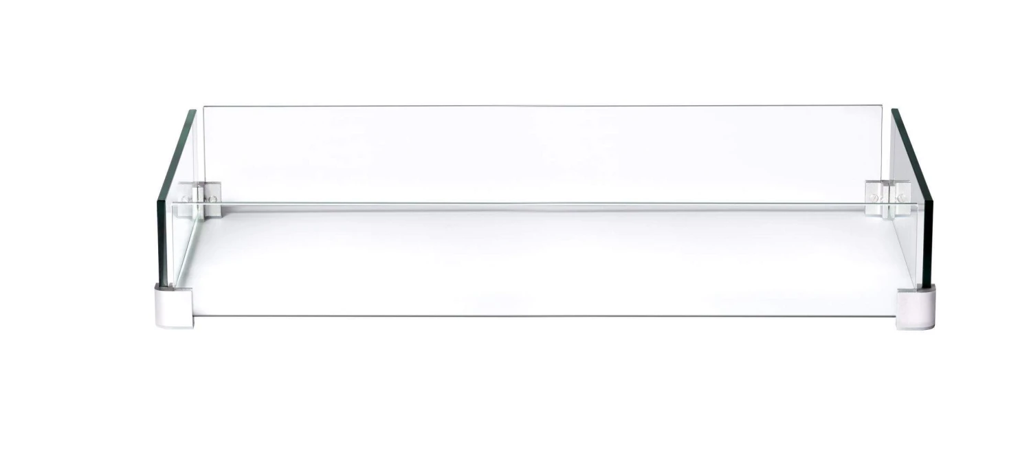 Napoleon Rectangular Glass Windscreen for GPFTR3656-BZ, KENS1-BZ, MUSK1-BZ and VICT1-BZ Fire Tables, 35.75 x 14.25-Inch provides a high quality accessory for your Napoleon Patioflame fire pit table. The heavy-duty, 3/8-inch thick tempered glass construction ensures a durable and long lasting product while the custom shape is intended to shield the 30 x 10-inch fire pit burners from the wind. The glass guard measures 35.75 x 14.25 x 5-inches tall in order to keep the wind from disturbing the flame pattern and help enhance the ambiance of the fire pit table.